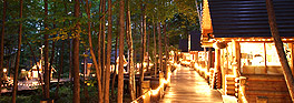 飯店旁的「森林智者的陽台」小木屋群,充滿羅曼蒂克氣息,販售精緻可愛的手工製品,夜晚打上燈光,更添神秘浪漫的氣氛。「森之時計咖啡館」,讓遊客在森林中品嚐美味的咖啡,此地更是日劇「溫柔時光」的主場景,劇中那股淡淡的哀愁及緩慢的步調感動了許多人。